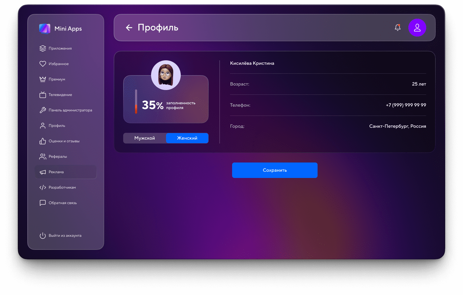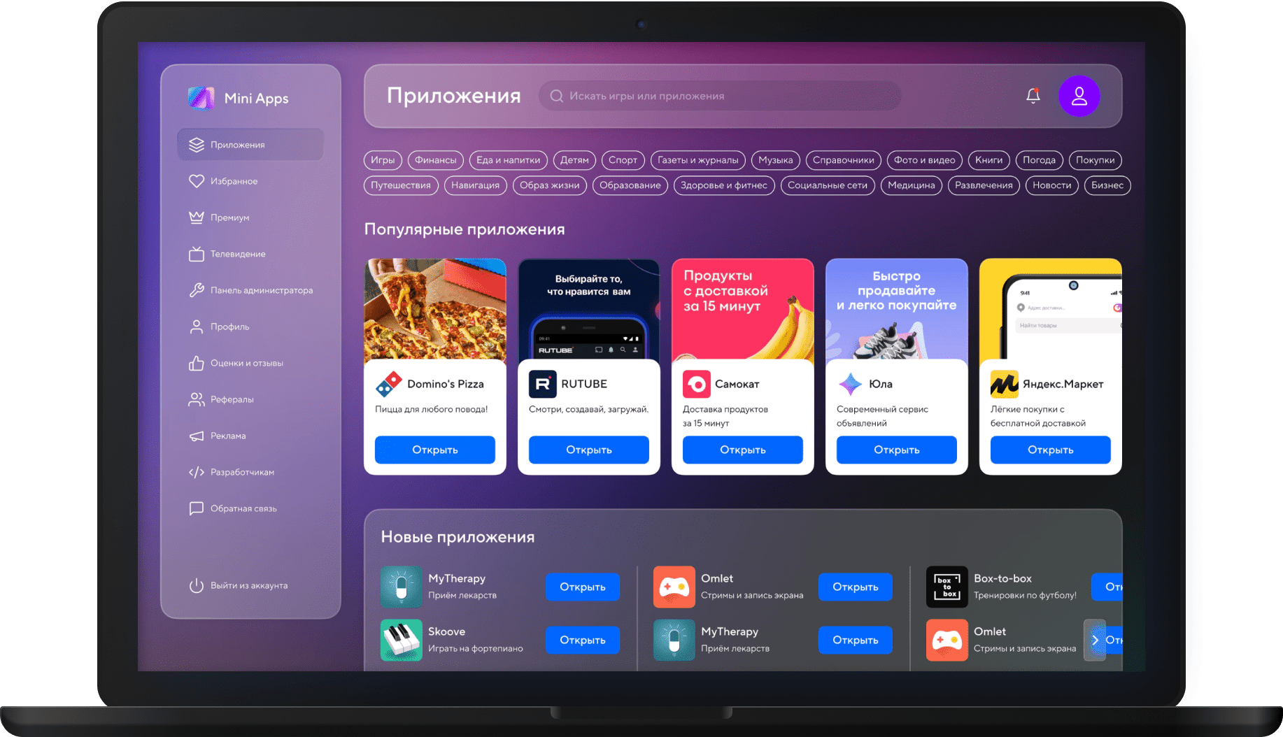 Разработать дизайн маркет-плейса мини-приложений для iOS, Android и Desktop