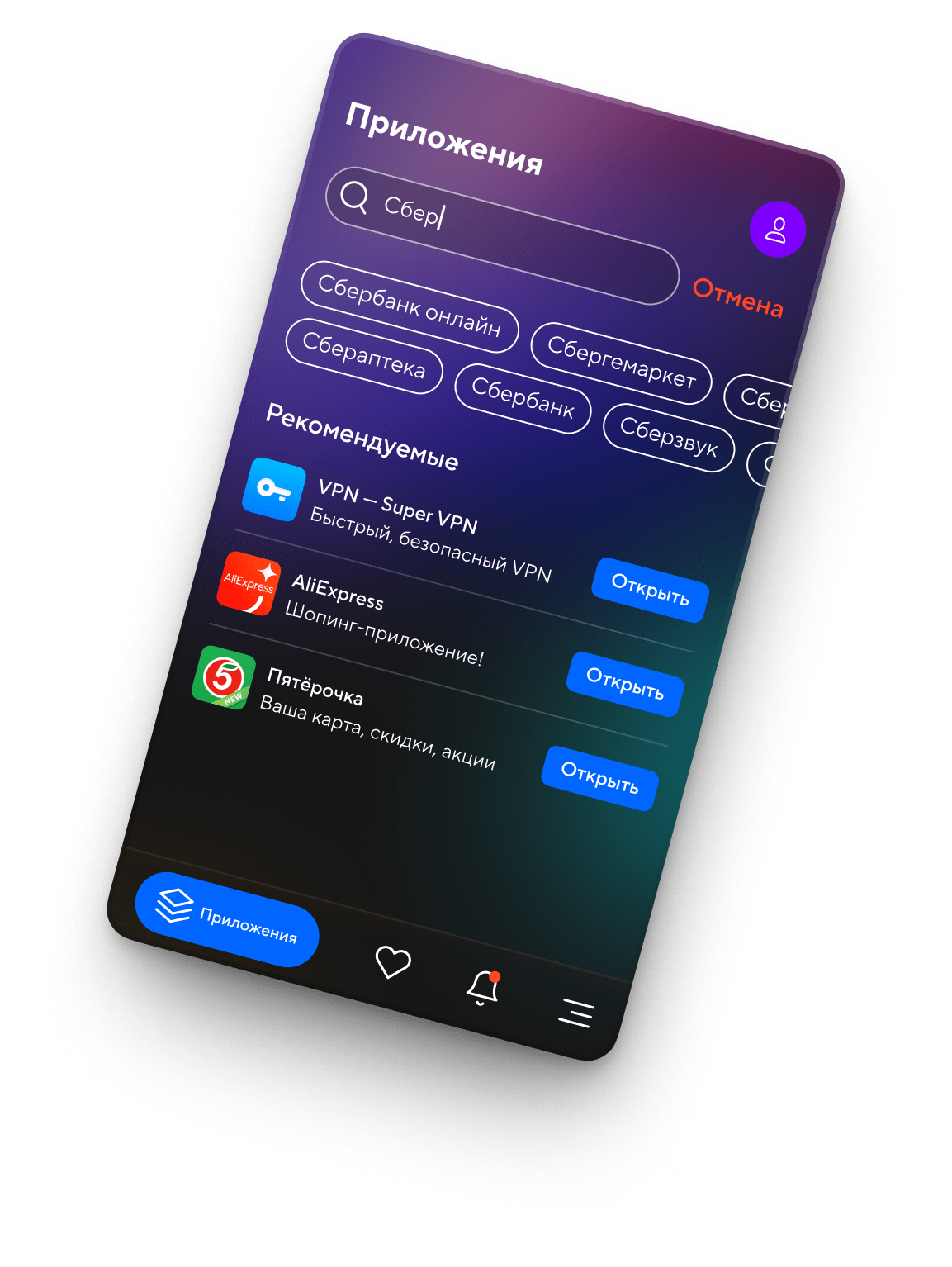 - Доступ к приложениям, заблокированным в App Store и Google Play
